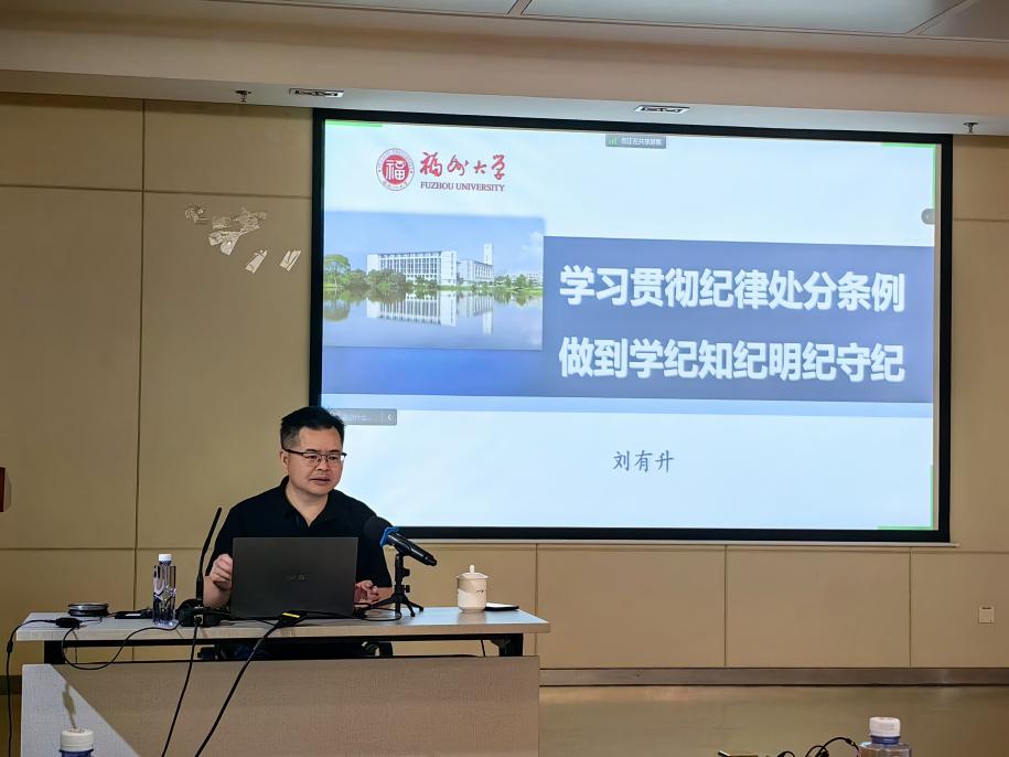 會議邀請省直機關工委講師團特聘教授、福州大學馬克思主義學院副院長劉有升作題為“學習貫徹紀律處分條例 做到學紀知紀明紀守紀”的報告。他結合典型案例,從《條例》的修訂背景和重要意義、主旨要義和實踐要求、貫徹執行等三個方面對新修訂《條例》進行深入闡釋、系統解讀。